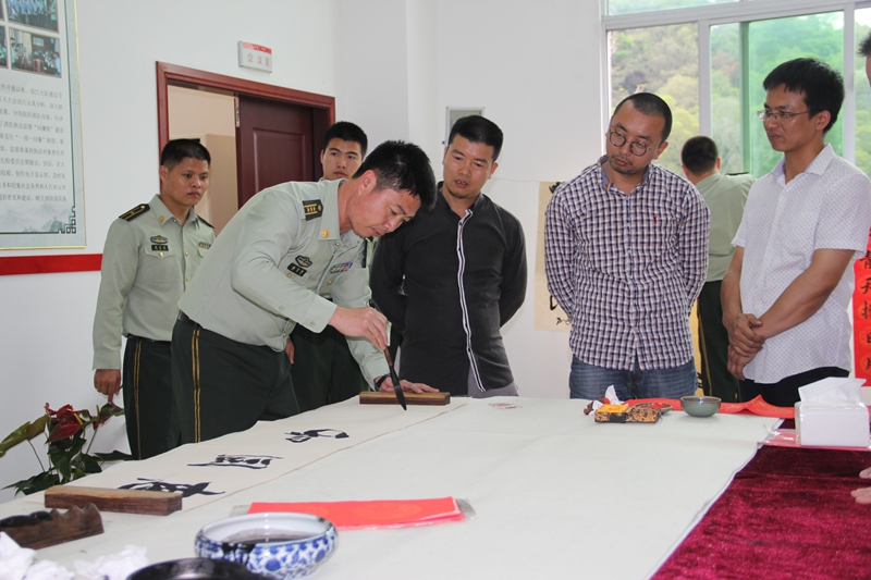 當(dāng)天下午,洛江區(qū)書法家在消防大隊廉政教育基地為全體官兵開展了“文化進(jìn)軍營暨廉政書法筆會”活動。