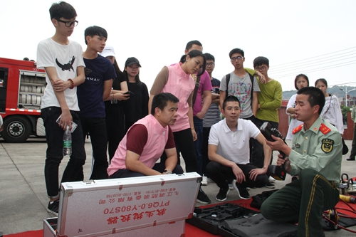 在大隊軍政主官的陪同下及中隊官兵的精心組織下,30余名團(tuán)員青年參觀了消防車庫,詳細(xì)了解各消防車輛的名稱、用途、功能等。現(xiàn)場,消防官兵還積極向他們灌輸消防安全常識,引導(dǎo)他們提升日常生活中的防火意識。“這個是遠(yuǎn)距離拋射繩子,主要用于解救臺風(fēng)天等被洪水圍困的群眾……”緊接著,消防官兵詳細(xì)講解了交通事故救援、搶險救援及滅火救援等各類急、難、險、重救援器材裝備的功能、使用范圍等。