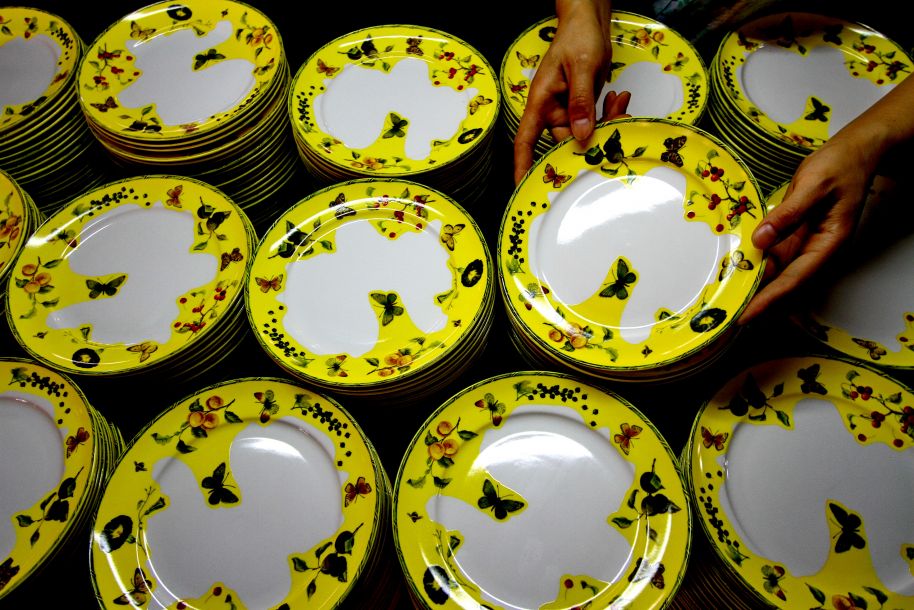 6月25日,河北省邯鄲市峰峰礦區(qū)裕行陶瓷有限公司工人在查驗(yàn)陶瓷白坯質(zhì)量。河北省邯鄲市峰峰礦區(qū)盛產(chǎn)陶瓷,全區(qū)目前擁有陶瓷企業(yè)90余家,從業(yè)人員2萬多人,主要產(chǎn)品有日用陶瓷、藝術(shù)陶瓷、建筑陶瓷等。隨著“一帶一路”倡議的推進(jìn),峰峰礦區(qū)陶瓷產(chǎn)業(yè)迎來新的發(fā)展機(jī)遇。目前該區(qū)年出口陶瓷1.2億件,產(chǎn)品暢銷東南亞、中東等地區(qū)。