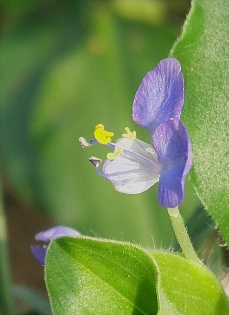 飯包草為多年生草本,性喜高溫潮濕,耐陰。莖有明顯的節(jié)和節(jié)間。葉互生,具葉鞘。葉片卵形,有明顯的葉柄。佛焰苞因下緣連合而成漏斗狀;ㄐ蛳旅嬉恢呒(xì)長(zhǎng)梗,具1~3朵不孕花,伸出佛焰苞;上面一枝有花數(shù)朵,結(jié)實(shí),不伸出佛焰苞。花瓣藍(lán)色,圓形,能育雄蕊3枚,不育雄蕊2~3枚,頂端四裂。多年生匍匐草本,莖披散,多分枝,長(zhǎng)可達(dá)70厘米,被疏柔毛。葉片卵形,總苞片佛焰苞狀,柄極短,與葉對(duì)生;ㄆ谙那。全草供藥用,可治小兒肺炎,小便不利,疔瘡腫毒。