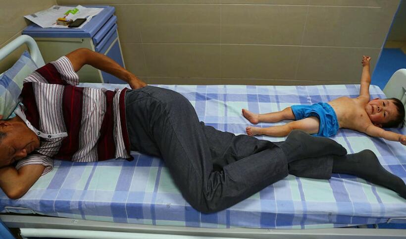 他不是一個(gè)小男孩。盡管他穿著童裝,看著也就兩三歲模樣和身高,實(shí)際上他已經(jīng)是 29 歲的青年男子。但是由于從小他的身體缺少一種激素,醫(yī)生說他再也不可能長高了。他和父親一起住在醫(yī)院,平時(shí)他都要借助一些道具才能爬上床,也常常被一些陌生人當(dāng)做小孩看待,這使他特別難過。由于天然的缺陷,他沒有去過學(xué)校,沒有交過什么朋友,也不敢喜歡女孩子。只和自己的父親相依為命。看著他的遭遇,真是揪心啊。祝福這對父子,希望有奇跡發(fā)生。