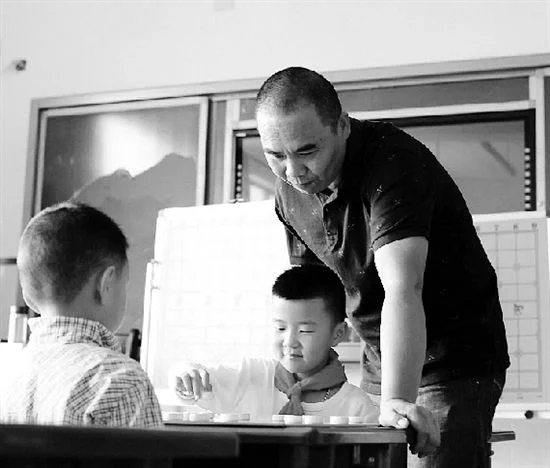 學(xué)校走廊里和花壇周邊擺滿了他們的成果——有一兩百盆蘭花和四五百盆多肉植物,這些花盆里立著一張張標(biāo)明植物名稱的標(biāo)簽。“這些標(biāo)簽都是學(xué)生幫忙寫上的,現(xiàn)在,這里大部分植物學(xué)生都能認(rèn)出名字來。”徐陸軍說。依靠獨臂攝影指導(dǎo)學(xué)生下棋徐陸軍老師在上數(shù)學(xué)課。