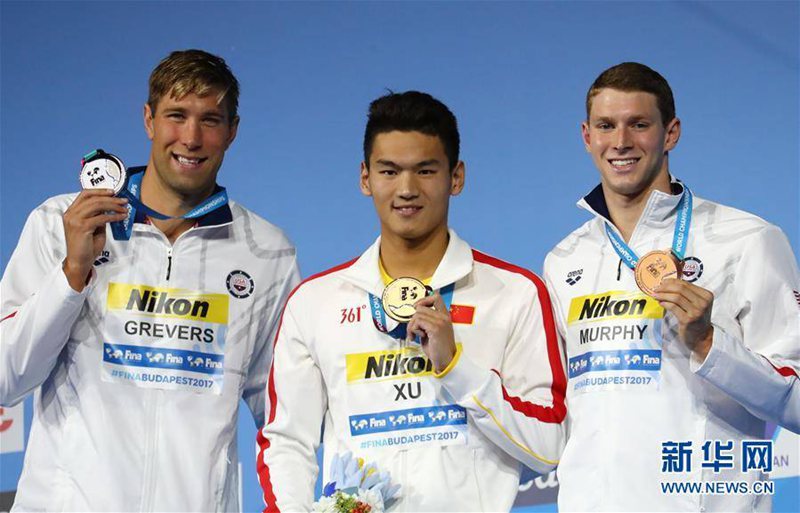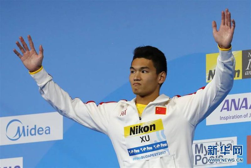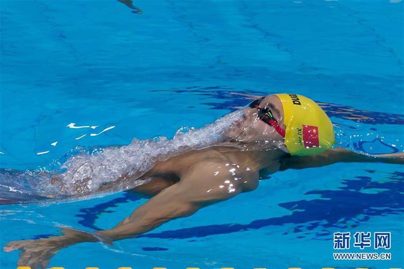 7月25日,中國選手徐嘉余在比賽中。當日,在匈牙利布達佩斯進行的第17屆國際泳聯(lián)游泳世錦賽男子100米仰泳比賽中,中國選手徐嘉余以52秒44的成績奪冠。
