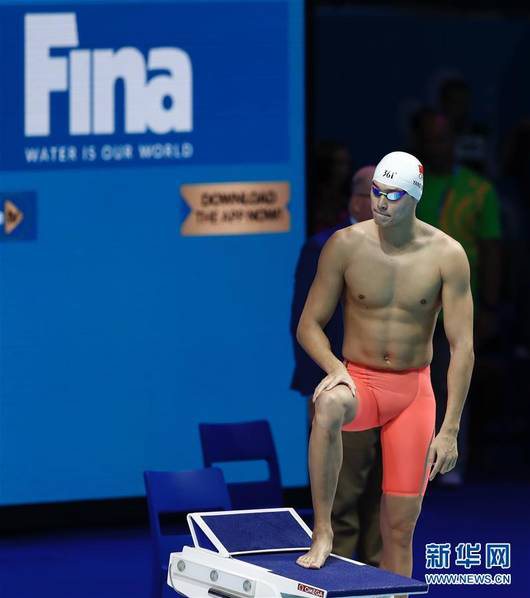 7月25日,孫楊(前左一)在決賽后接受祝賀。