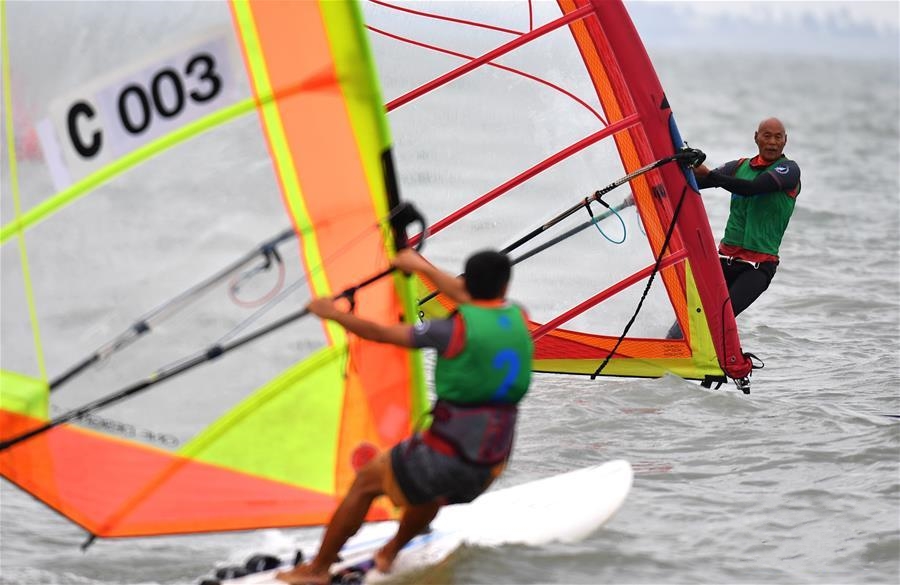 11月14日,選手在團體接力賽中。 當(dāng)日,2019中國大眾帆板巡回賽暨第6屆國際旅游島帆板大獎賽?谡颈荣愒诤D鲜『?谑虚_賽,180余名選手參加比賽。 新華社記者郭 ... [更多詳細]