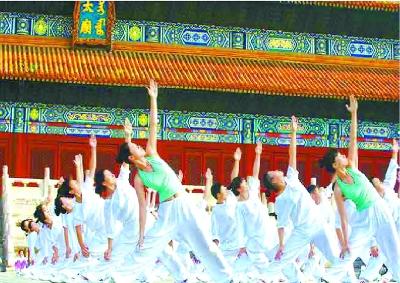 2010年,首都職工在勞動(dòng)人民文化宮太廟前廣場表演“新型”工間操