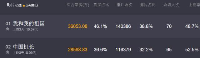 《我和我的祖國》票房爆發(fā)之外,電影《我和我的祖國》同樣不差,雖然在排片上略差了一籌,但是在10月2日當(dāng)天也拿下了2.8億的單日票房,僅僅只是落后于《我和我的祖國》罷了。從上座率來看,《中國機(jī)長》更是超過了《我和我的祖國》,估計(jì)接下來還有望趕超。