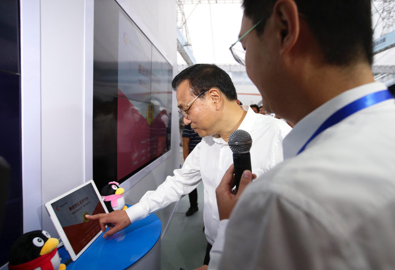 對著觸屏上人們熟知的“發(fā)紅包”界面,總理伸出右手點擊了一下。大屏幕上立刻不斷彈出創(chuàng)業(yè)者“成功領(lǐng)取1000元紅包”的信息。2016年10月12日,在深圳考察全國雙創(chuàng)周主題展示時,李克強在騰訊展臺前,應(yīng)公司創(chuàng)始人馬化騰邀請為創(chuàng)業(yè)者“發(fā)紅包”。