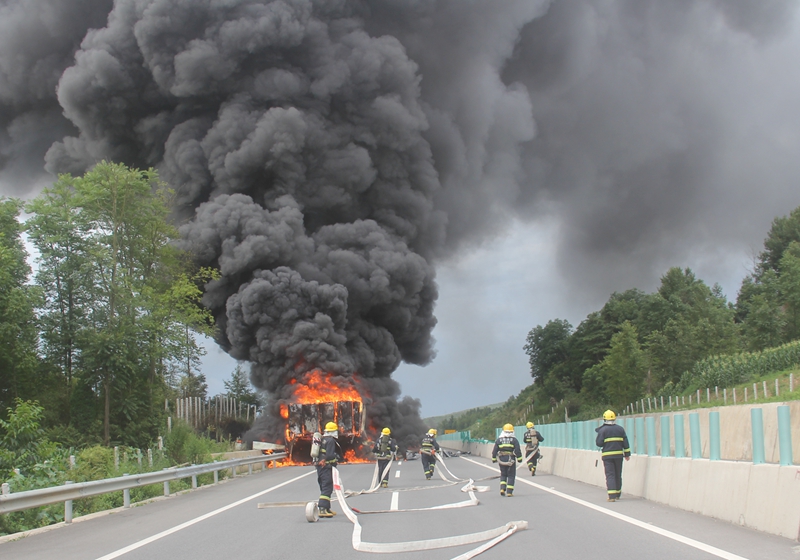 7月23日16時(shí)17分,云南昭通市特勤消防中隊(duì)接到指揮中心調(diào)令稱:一輛滿載電冰箱的掛車在昭麻高速公路靖安段發(fā)生自燃,無人員被困。接到命令后,中隊(duì)立即出動(dòng)2車13人趕往現(xiàn)場(chǎng)處置。