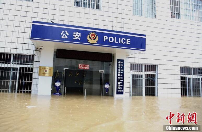 8月15日,因上游持續(xù)強(qiáng)降雨,柳江河廣西柳州市區(qū)河段洪水暴漲。13時(shí)水位達(dá)85.02米,超過(guò)警戒水位2.52米,沿江一帶民房和道路盡數(shù)被淹,坐落在江濱路的柳州市公安局水上派出所再次“名副其實(shí)”。