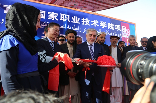 阿富汗首席執(zhí)行官阿卜杜拉、我國駐阿富汗大使姚敬一起出席阿國家職業(yè)技術(shù)學(xué)院項(xiàng)目開工儀式并剪彩