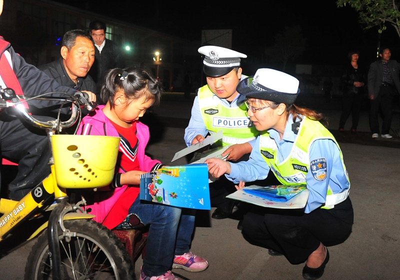 山東臨沂河?xùn)|交警電影下鄉(xiāng)播撒交通安全知識(shí)
