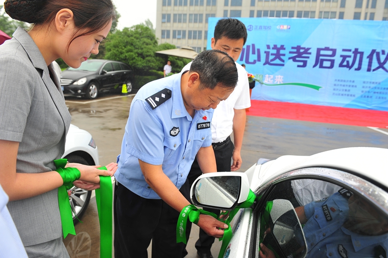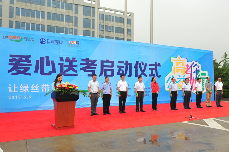 為確保廣大考生順利趕考,6月6日上午,山東省臨沂市2017“綠絲帶”愛心送考大型公益行動在正式駕校正式啟動。