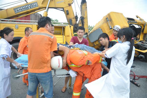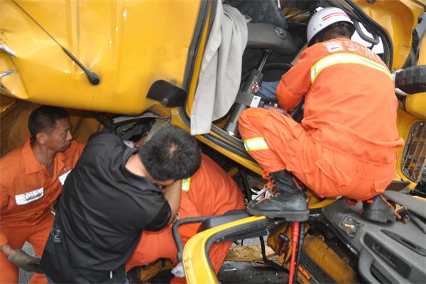 2017年6月5日14時(shí)04分,江西吉水縣消防大隊(duì)接到群眾報(bào)警稱:樟吉高速往南昌方向67公樁處一貨車追尾,駕駛員被卡在車內(nèi)無法動(dòng)彈,請(qǐng)求消防隊(duì)前來救援。接到報(bào)警后,吉水縣中隊(duì)迅速出動(dòng)一輛搶險(xiǎn)救援車,7名官兵趕赴車禍現(xiàn)場(chǎng)。