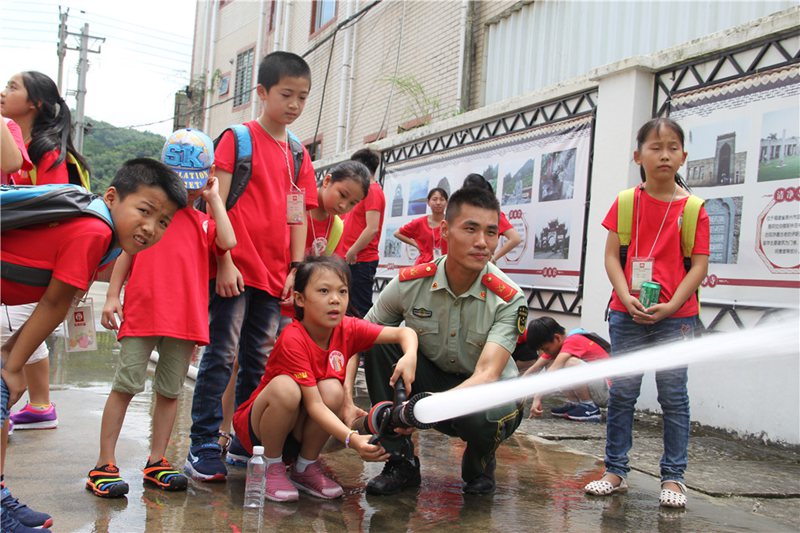 為動(dòng)員全社會(huì)共同關(guān)注暑期留守兒童消防安全,提升留守兒童的消防安全自防自救能力,近日,福建泉州洛江區(qū)政協(xié)、團(tuán)區(qū)委、區(qū)未成年保護(hù)站、關(guān)工委、消防大隊(duì)、志愿服務(wù)隊(duì)等多部門聯(lián)合開(kāi)展“少年夢(mèng) 強(qiáng)軍夢(mèng)”留守兒童消防軍事日主題活動(dòng),來(lái)自洛江區(qū)河市鎮(zhèn)的34名留守兒童在志愿者的陪同下走進(jìn)洛江區(qū)消防大隊(duì),近距離接觸學(xué)習(xí)消防安全知識(shí)。