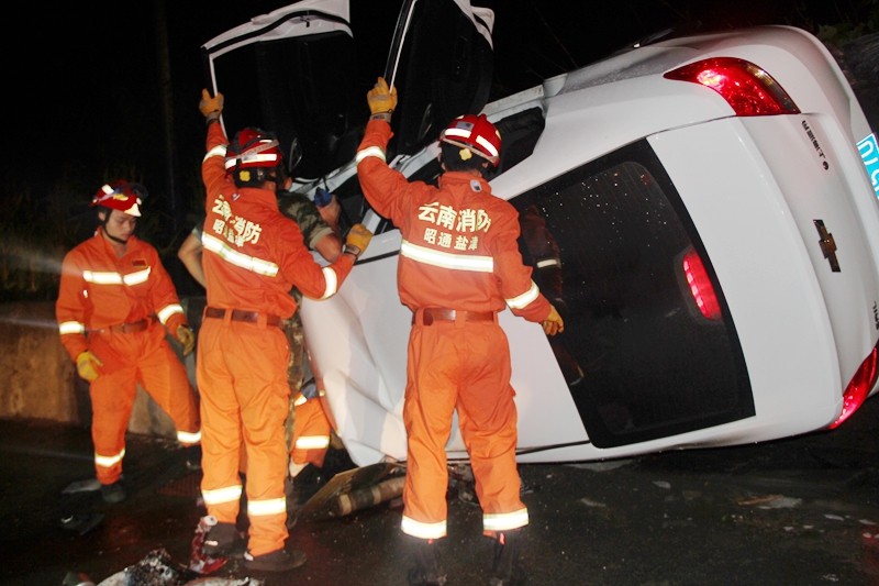 8月4日凌晨1時許,云南昭通市鹽津縣中和鎮(zhèn)渝昆高速竹麻林六井壩加水站前發(fā)生一起小轎車側(cè)翻事故,事故造成4人被困,情況十分緊急。