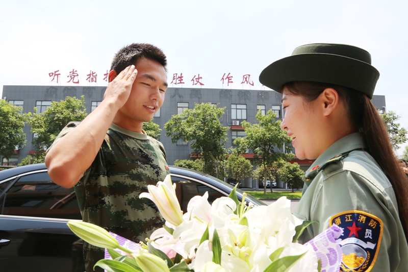 8月14日上午,在浙江衢州市開發(fā)區(qū)“8•4”電鍍廠火災(zāi)事故滅火救援中受傷的消防隊(duì)員鄭杰終于康復(fù)出院回“家”。開發(fā)區(qū)消防大隊(duì)舉行了隆重的歡迎儀式,戰(zhàn)士們用雷鳴般的掌聲和熱情的擁抱迎回英雄,表達(dá)內(nèi)心喜悅:“又可以和鄭杰同志一起并肩作戰(zhàn)了!”