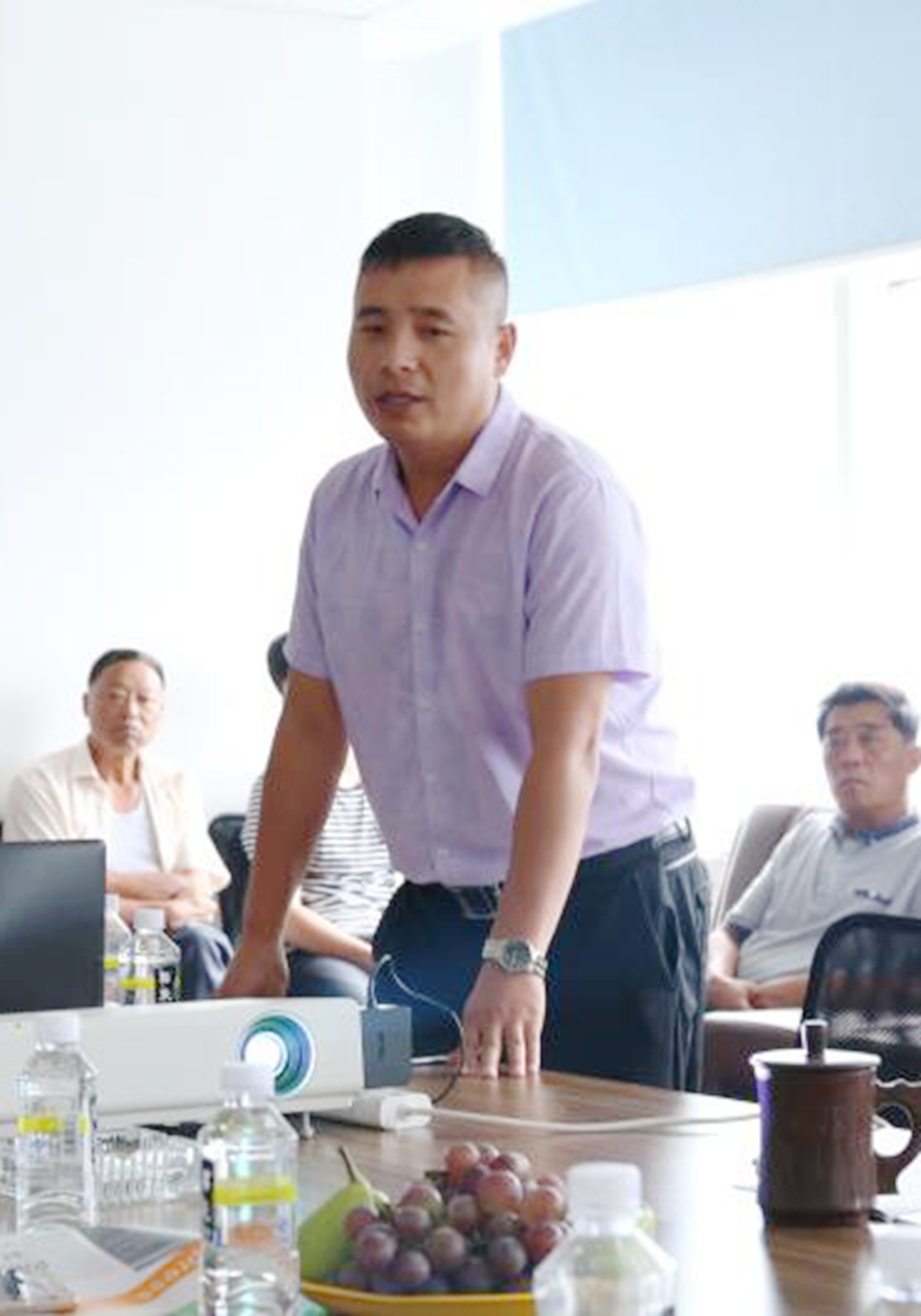 雙創(chuàng)導(dǎo)師、愛迪購(gòu)車高級(jí)顧問趙勇坤(左二) 向與會(huì)代表介紹購(gòu)車新模式理念