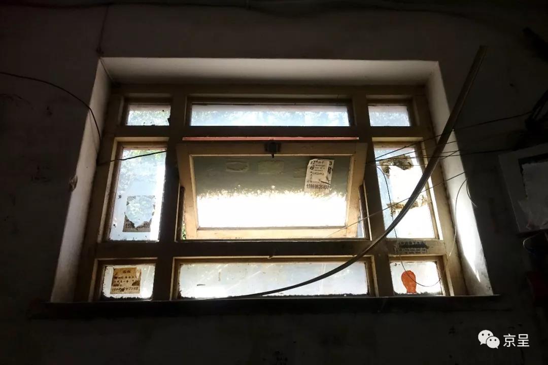 樓道窗戶上積攢了厚厚的塵土。