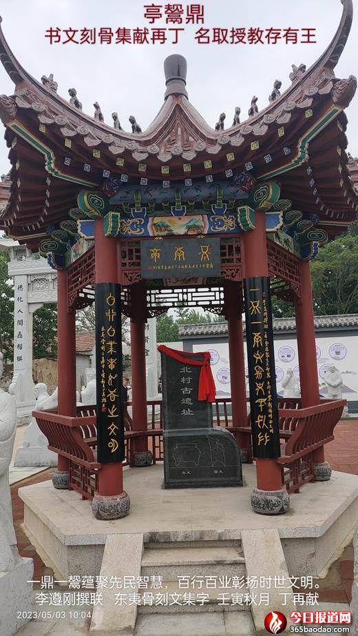 記者發(fā)現(xiàn),丁再獻(xiàn)老先生的作品大部分書法藝術(shù),包括王有存同志省吃儉用個人出資70多萬興建的“鼎鬶亭”和“孝德文化園”文旅公益項目之匾額及碑和亭的楹聯(lián)正文骨刻文字居多,落款釋文全部是行草書法,而這幅長聯(lián),不僅對仗工整,丁先生采用了行楷書法藝術(shù)龍門對形式,可以用聯(lián)佳書美來形容了。