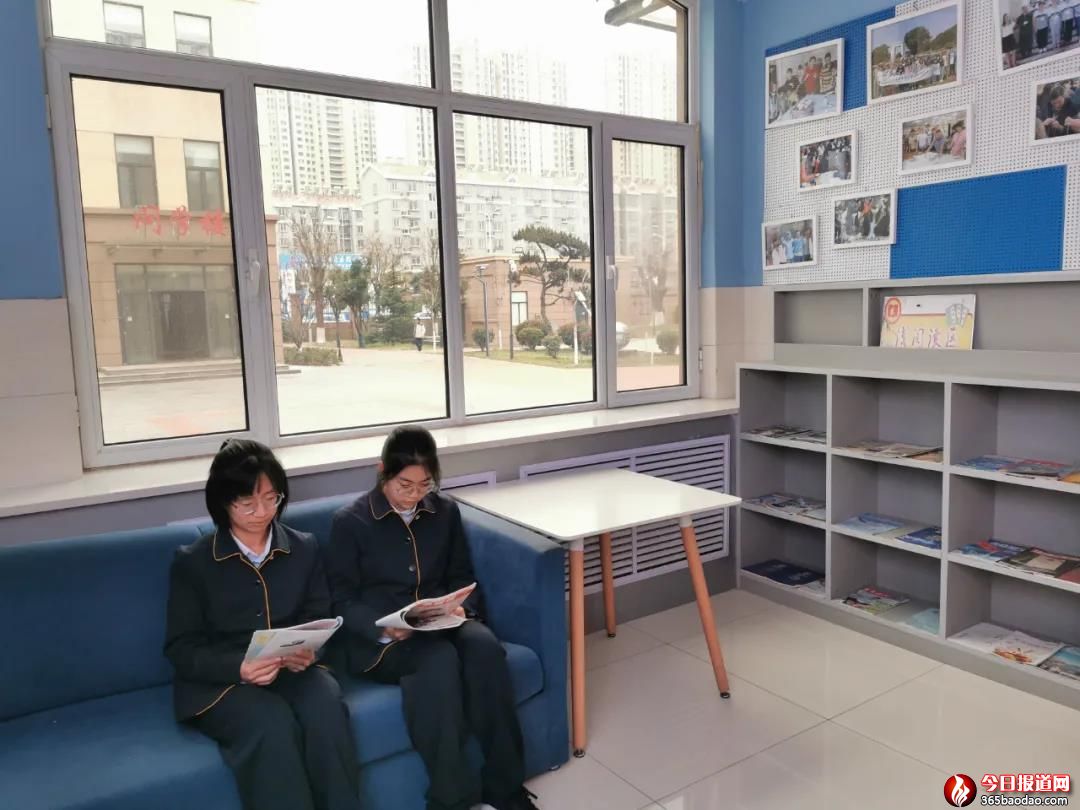 目前濟(jì)南三中學(xué)部書(shū)籍期刊擺放達(dá)164本,十八個(gè)淺閱讀區(qū)擺放學(xué)生閱讀期刊800多本,品正樓二樓教師閱讀區(qū)期刊書(shū)籍?dāng)[放109本,學(xué)部集體備課室教學(xué)期刊擺放182本。每到課間,師生在書(shū)架前盡情駐足閱覽,成為書(shū)香三中的最美剪影。