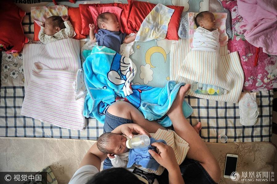 平時睡覺的時候,孩子們就像安靜的天使。然而一哭鬧起來,則會產(chǎn)生連鎖反應(yīng),一個接一個開始鬧,最后變成四重奏。“這種情況下,一個人都不知先顧哪個好。”劉陽無奈地說。家里的大人們一人哄一個寶寶,才能消停下來。在孩子出生之前,劉陽經(jīng)常跟發(fā)小出去玩,參加各種聚會,也愛玩游戲。