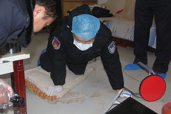 吳洪湃在莘縣“2.09”殺人案勘察現(xiàn)場(chǎng)