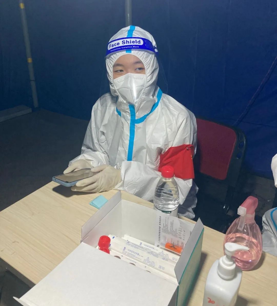 作為志愿團(tuán)隊(duì)里年齡最小的“05后”,興晨負(fù)責(zé)的是掃碼綁管環(huán)節(jié),通過掃描社區(qū)居民出示的健康碼,綁定對(duì)應(yīng)的核酸檢疫試管,輔助醫(yī)院的醫(yī)護(hù)人員進(jìn)行核酸檢測。由于白天要上網(wǎng)課,團(tuán)隊(duì)給她安排了下午5點(diǎn)到晚上10點(diǎn)這一輪志愿服務(wù)。在這五個(gè)小時(shí)里,興晨要全程待在“大白”防護(hù)服里,在崗期間禁食禁水,負(fù)責(zé)整棟樓1000多名居民的掃碼核驗(yàn)工作。