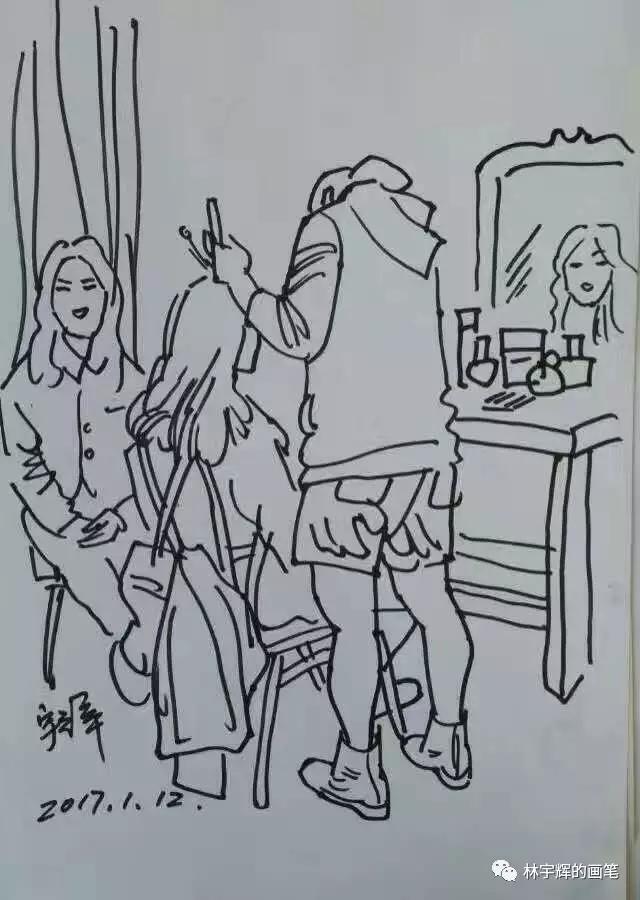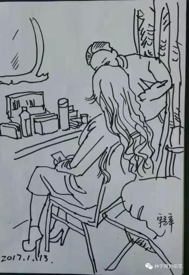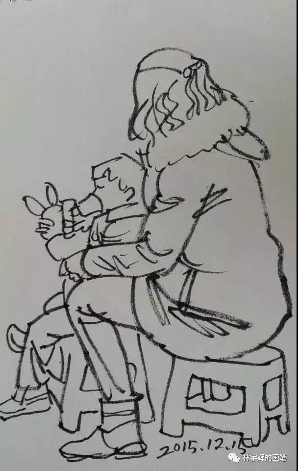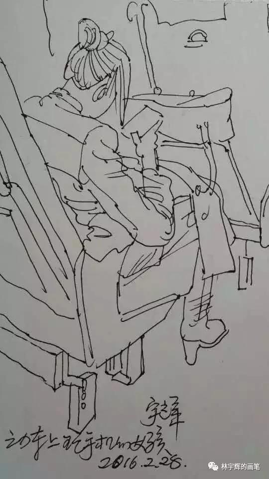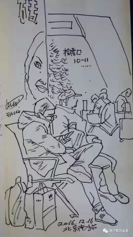 林宇輝警官不論走到哪里,都隨身帶著速寫本和畫筆。哪怕是停車等紅燈的時(shí)間,也要拿出來(lái)畫上幾筆。這因?yàn)槿绱,才練就了如此傳神的畫筆。借著今天的分享,大家可以感受一下。不論是在火車上、醫(yī)院里、飯店里、理發(fā)店、火車站,林警官無(wú)時(shí)無(wú)刻的筆耕不輟,用畫筆記錄著身邊的點(diǎn)點(diǎn)滴滴。