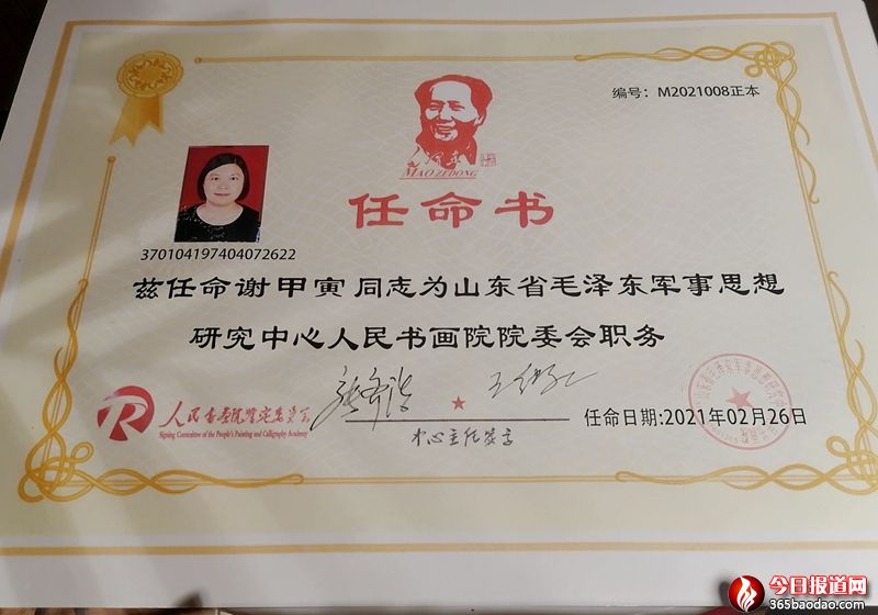 任命謝甲寅女士為人民書畫院院委會及副院長職務