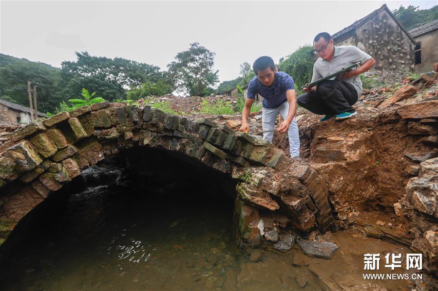 8月22日,在江蘇省盱眙縣棚戶區(qū)改造現(xiàn)場(chǎng),工作人員戚家坤(左)、劉剛在對(duì)三星橋進(jìn)行考古勘查。