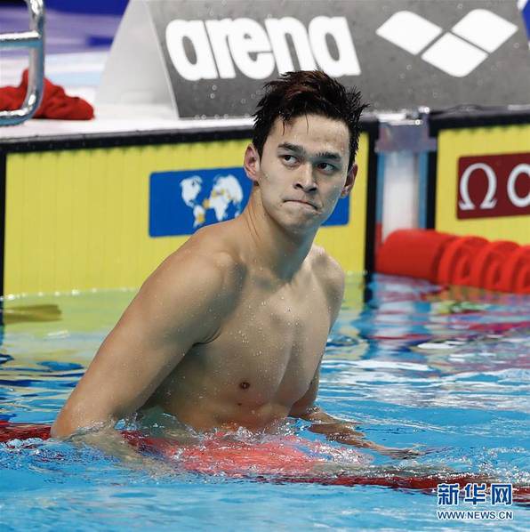 7月25日,孫楊(前左一)在決賽后接受祝賀。
