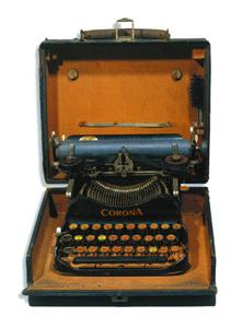 一臺打字機 一臺打字機,小巧別致,略有殘破,機身固定在黑色皮紙包裹的木盒內(nèi),合起來如同一只微型手提箱,打開箱蓋則能立即進入工作模式。這臺打字機牌子為“CORO-NA”,曾被李大釗使用過。