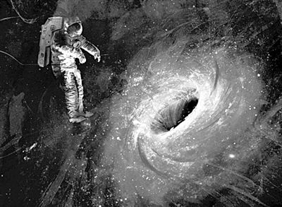 據(jù)此,科學家推斷出近乎天方夜譚的觀點:如果有一個質量極大的恒星,它自身產生的重力也無比巨大,最終恒星必定會因為不堪自身重負而坍縮成一個密度和曲率都無窮大、體積無窮小的點。在這個點的周邊,會創(chuàng)造出一片引力極強質量極大、連光都無法逃出的特殊區(qū)域。在時空的維度上,就像一個無比深凹的洞。科學界給了一個簡單的名詞:黑洞。