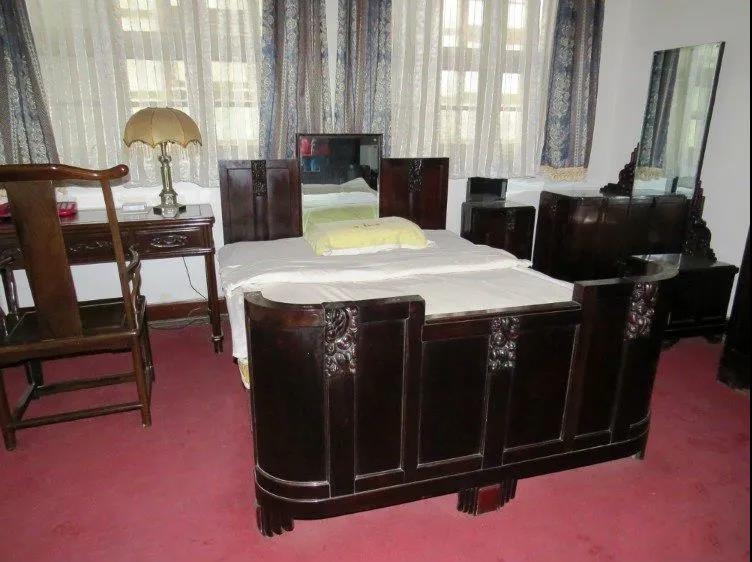 毛澤東主席的居室位于別墅南側(cè)靠西的位置。床頭中央鑲嵌著一面大鏡子,顯得與眾不同。這是為了給毛澤東夜間讀書、看文件,聚光轉(zhuǎn)門擺放的。室內(nèi)靠北與衛(wèi)生間門挨著,有個木櫥,移開木櫥,露出一個黃色的木框。這里是一個暗道機關(guān),一旦有情況,可以從這里緊急撤離奔向機場或者專列站 。