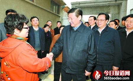 習(xí)近平總書記與焦裕祿同志的二女兒焦守云親切握手