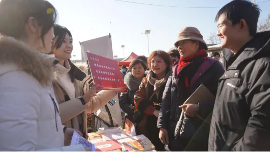 活動深入郭店大集,設(shè)置了文學(xué)書刊展、書畫展、非遺展等展位!渡綎|文學(xué)》《時代文學(xué)》《百家評論》《當(dāng)代小說》和山東人民出版社編輯,以及作家王玉玨、李恒昌、劉君、蘇雨景等現(xiàn)場推介書刊,并向郭店街道辦事處和大集上的攤主和群眾贈送《山東文學(xué)》《時代文學(xué)》《百家評論》《當(dāng)代小說》《山東作家作品年選》《大河涅槃》《另一種雪》《向陽坡上》《假面先鋒》等百余種文學(xué)精品書刊;書畫展位上,盛洪義、翟圣亮、常猛三位書法家現(xiàn)場揮毫潑墨,為群眾手寫春聯(lián)送祝福;在非遺展位,張鴻福向群眾介紹了年畫、剪紙、糖畫、面塑、泥塑等省級非物質(zhì)文化遺產(chǎn);活動現(xiàn)場還設(shè)置了文學(xué)常識趣味問答環(huán)節(jié),期刊編輯與群眾進(jìn)行文學(xué)互動。