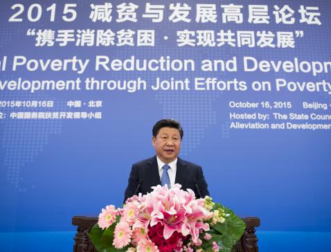 10月16日,2015減貧與發(fā)展高層論壇在北京人民大會堂舉行。習近平出席論壇并發(fā)表主旨演講。新華社記者李學仁攝