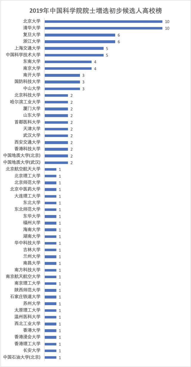 2019年中國(guó)科學(xué)院院士增選初步候選人高校榜