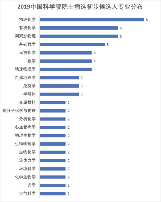 2019中國(guó)科學(xué)院院士增選初步候選人專業(yè)分布