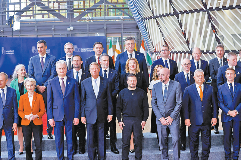 4d406cc5154753f52962f82585f41cf8u1.png 10月17日,烏克蘭總統(tǒng)澤連斯基在布魯塞爾向歐盟各國(guó)領(lǐng)導(dǎo)人介紹其“勝利計(jì)劃”。圖為會(huì)前合影。(澎湃影像)