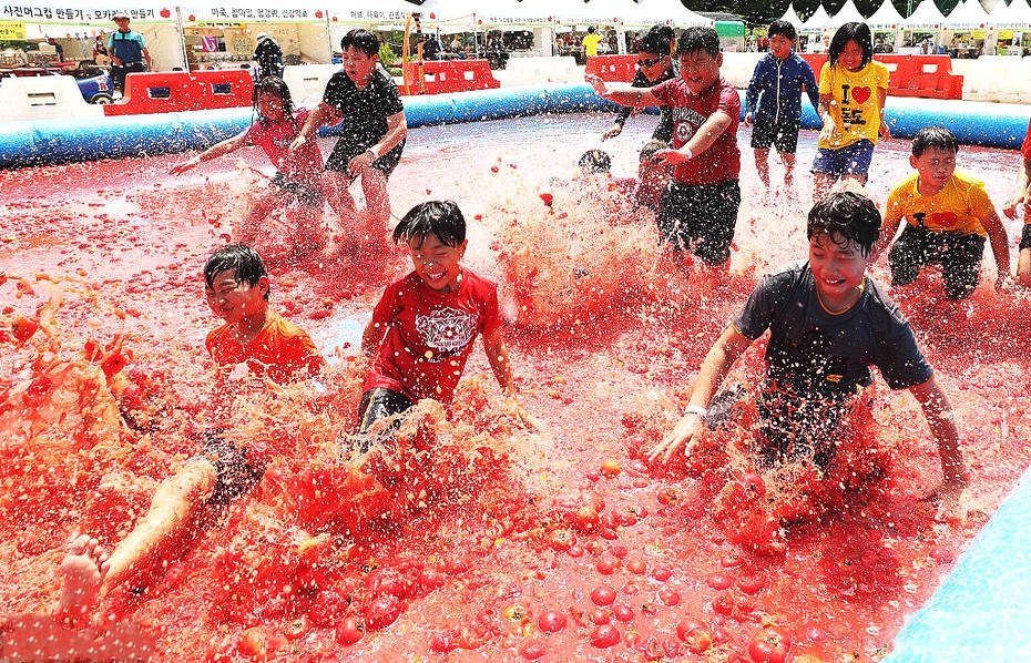 韓國(guó)退村舉行西紅柿節(jié) 兒童紅色海洋中嬉戲玩耍現(xiàn)場(chǎng)圖現(xiàn)場(chǎng)圖。 ... [更多詳細(xì)]