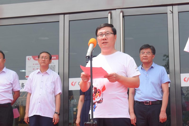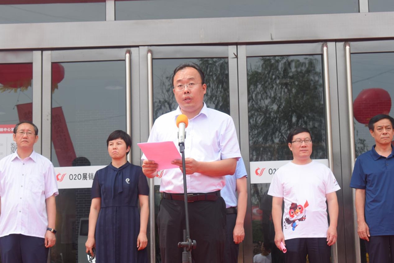 揭牌儀式前,縣委副書記、政府縣長田安平發(fā)表了熱情洋溢的致辭,他首先代表縣四大班子對中陽縣電子商務(wù)公共服務(wù)中心的啟動運營表示熱烈的祝賀。田縣長在致辭中指出,近年來,我縣以農(nóng)業(yè)供給側(cè)結(jié)構(gòu)改革為主線,以增加農(nóng)民收入為核心,著力構(gòu)    建“321+N”的特色農(nóng)業(yè)產(chǎn)業(yè)體系,8個特色產(chǎn)業(yè)園雛形初現(xiàn),中陽核桃、手工掛面、黑木耳、香菇、油合蔥、老陳醋等一批農(nóng)特產(chǎn)品包裝上市。但由于電子商務(wù)基礎(chǔ)不完善、產(chǎn)業(yè)集群優(yōu)勢不明顯、物流成本比較高等原因,好產(chǎn)品沒有好渠道、賣不出好價錢。他強調(diào),當前,我縣正處于鞏固脫貧成果、決勝全面小康、推進鄉(xiāng)村振興的歷史交匯期。各鄉(xiāng)鎮(zhèn)、各部門要緊緊抓住這一有利契機,動員廣大群眾積極發(fā)展特色產(chǎn)業(yè)、壯大產(chǎn)業(yè)規(guī)模、提高產(chǎn)品質(zhì)量,形成大眾創(chuàng)業(yè)、萬眾創(chuàng)新的濃厚氛圍;生產(chǎn)加工企業(yè)、合作社要圍繞功能開發(fā)、品牌打造,加強與電商平臺合作,完善和貧困戶的利益聯(lián)結(jié),激發(fā)群眾的內(nèi)生動力,通過電商產(chǎn)業(yè)發(fā)展有效促進農(nóng)民增收;運營商要充分發(fā)揮平臺作用和孵化器功能,把公共服務(wù)中心建設(shè)好、運營好,探索出一條適合中陽實際、符合市場發(fā)展規(guī)律的電商發(fā)展新模式;電商企業(yè)要通過線上與線下結(jié)合、上行與下行結(jié)合、銷售與生產(chǎn)結(jié)合、傳統(tǒng)與現(xiàn)代結(jié)合,暢通產(chǎn)品流通渠道,進一步暢通“農(nóng)貨出山,網(wǎng)貨下鄉(xiāng)”的渠道,真正解決電商物流不暢快的“最后一公里”問題,有效推動特色產(chǎn)品走出中陽,走向全國,為和美厚實小康中陽做出積極貢獻。