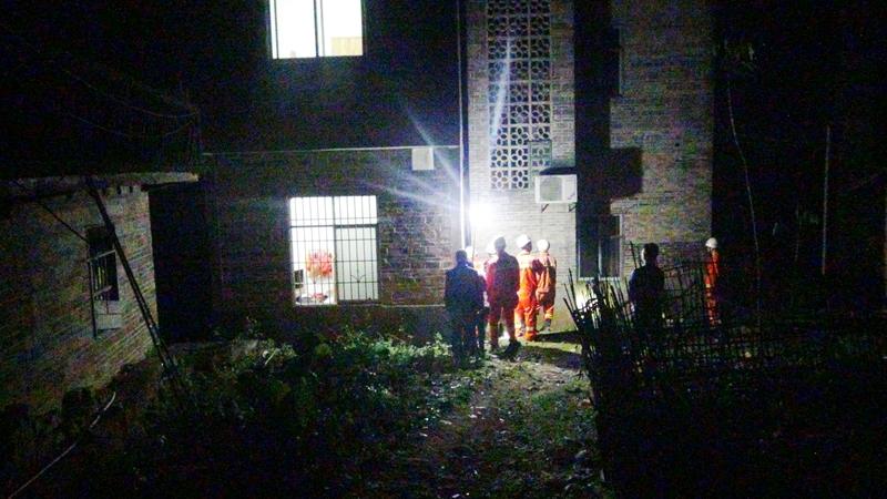 由于事發(fā)地為偏遠(yuǎn)山區(qū),19時45分許, 救援官兵才驅(qū)車到達現(xiàn)場。在群眾的引導(dǎo)下,消防官兵在兩個房子的夾墻的縫隙之間發(fā)現(xiàn)了被卡的男孩。墻縫寬大約16厘米,長約30米,而小孩就卡在墻縫深處,進退不得,救援人員無法靠近救援。兩個房子是磚混結(jié)構(gòu),分別有三層、五層的樓房,無法直接拆墻營救。