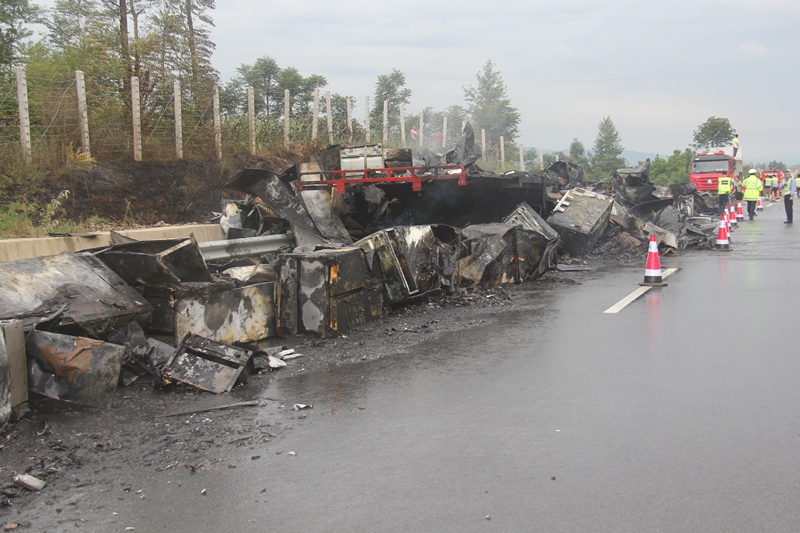 7月23日16時(shí)17分,云南昭通市特勤消防中隊(duì)接到指揮中心調(diào)令稱:一輛滿載電冰箱的掛車在昭麻高速公路靖安段發(fā)生自燃,無人員被困。接到命令后,中隊(duì)立即出動(dòng)2車13人趕往現(xiàn)場處置。