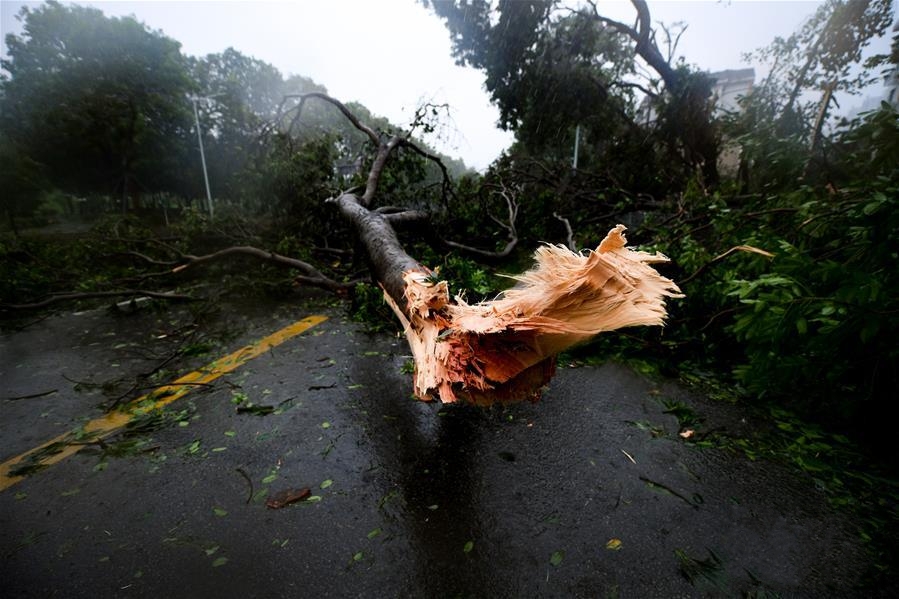 9月16日,在深圳市福田區(qū),“山竹”帶來的強風造成樹木倒伏。強臺風“山竹”于16日17時在廣東江門臺山市海宴鎮(zhèn)登陸?耧L暴雨肆虐,廣東嚴 ... [更多詳細]